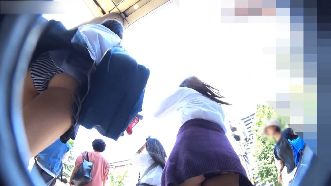 駅構内で見つけたJK3人組。風の助けもあってスカート内を順にチェックした結果、一番短いスカートから覗く「白のテカP」をターゲットにピックアップした。